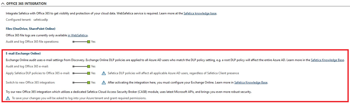 Z początkiem października 2022 r. firma Microsoft wycofała uwierzytelnianie podstawowe dla usługi Exchange Online. Oznacza to, że bieżąca integracja z usługą Office 365 nie jest aktualna, a inspekcja i zasady programu Exchange przestały działać. Z tego powodu wprowadziliśmy nową integrację z Microsoft 365 CASB, która rozwiązuje ten problem i zapewnia jeszcze więcej korzyści oraz funkcjonalności, które będą dostępne w niedalekiej przyszłości. Obecnie nowa integracja umożliwia dostęp do znacznie bardziej rozbudowanego audytu poczty e-mail platformy Microsoft 365, który ukazuje m.in.: kategorie danych, rozmiary wiadomości e-mail, a także rozmiary przesyłanych załączników.