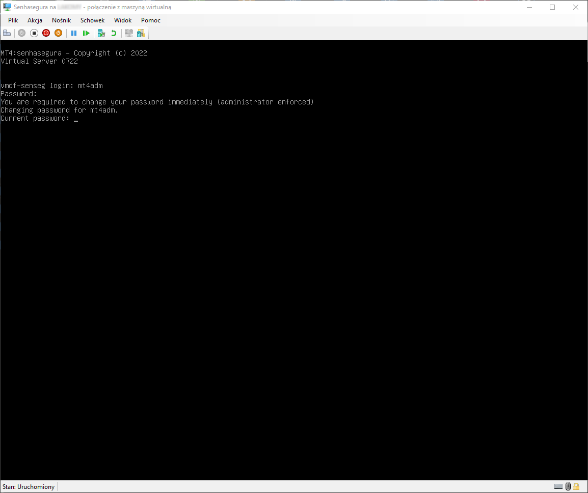 - Wpisujemy login / hasło – mt4adm / mt4adm, aby zalogować się do maszyny.