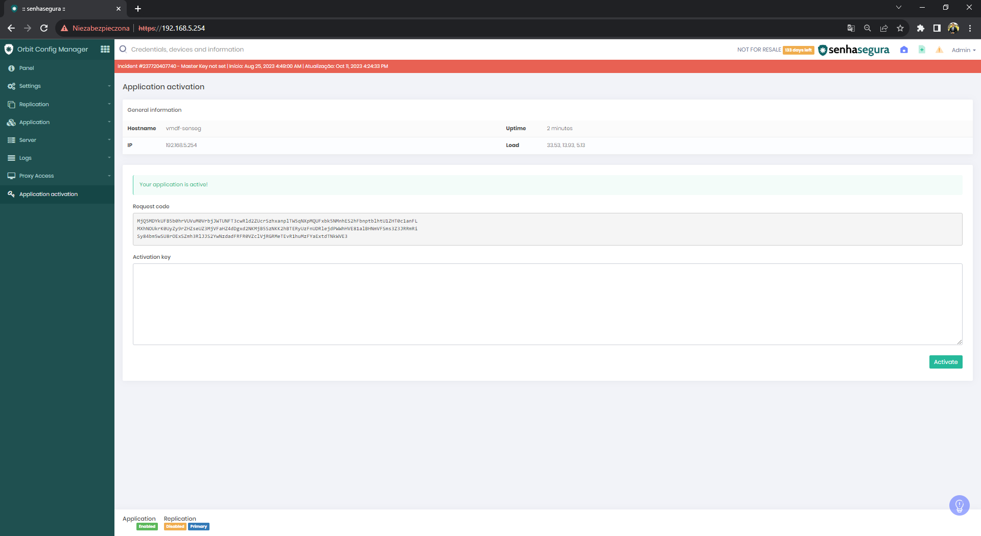 - Kopiujemy Request Code oraz adres IP maszyny i wysyłamy dane w odpowiedzi na otrzymany na samym początku e-mail, czekając na Activation Code.