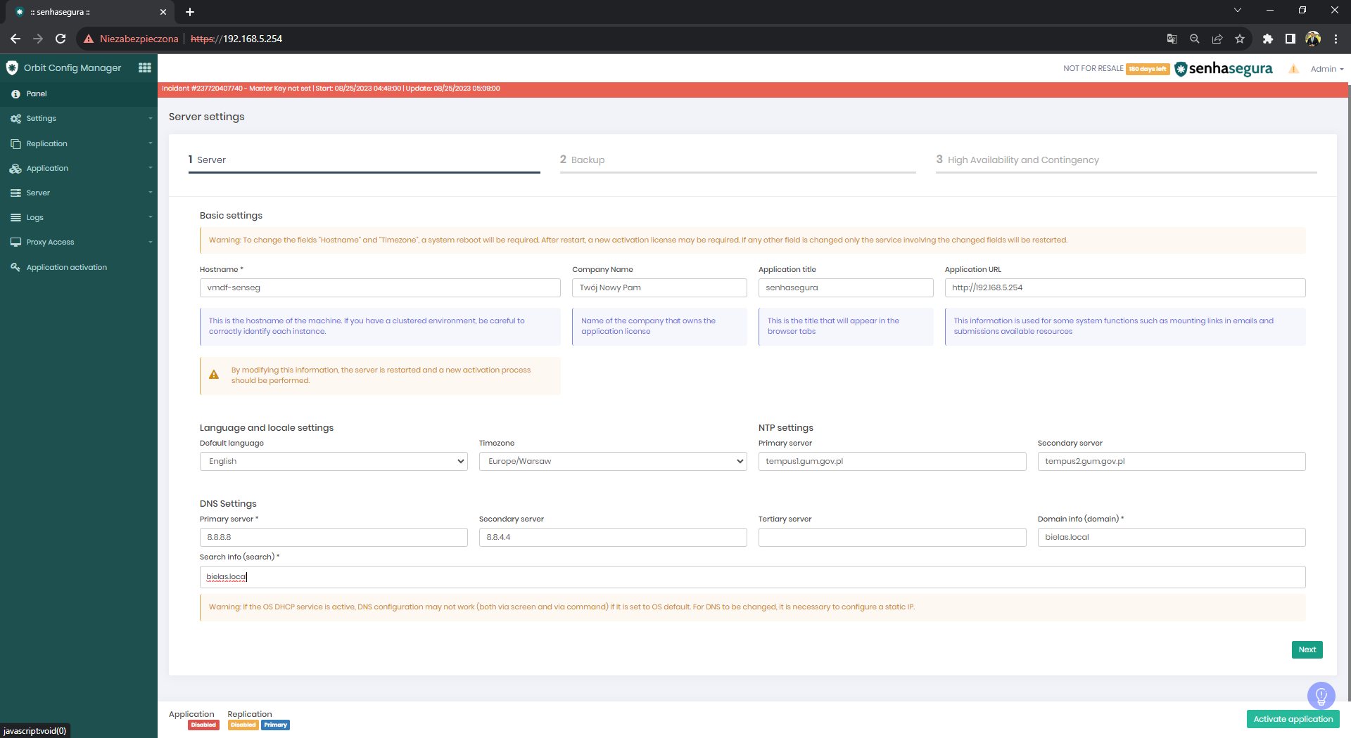 - “APPLICATION URL” – zmieniamy na nasz adres IP maszyny, aby móc pobierać gotowe konfiguracje np. do RDP czy SSH